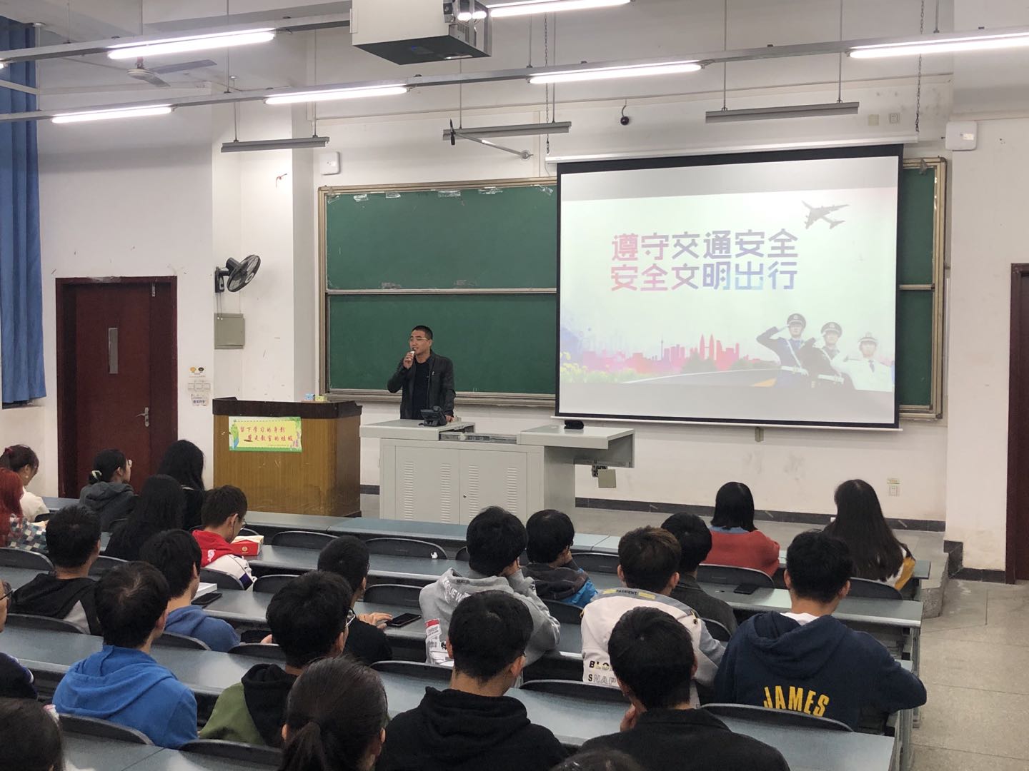 讲座中葛效鹏老师以各地非机动车发生惨烈交通事故的视频开头,引起同学们对交通安全特别是非机动车行驶安全的重点关注,并于后续的讲座中详细梳理了我校存在的校园交通乱象,以及机动车、非机动出行时应遵循的法律法规。告诫广大学生充分认识到增强自身交通安全意识的重要性,呼吁大家树立出行规则意识、法治意识,有效保障出行时自身安全和他人安全。