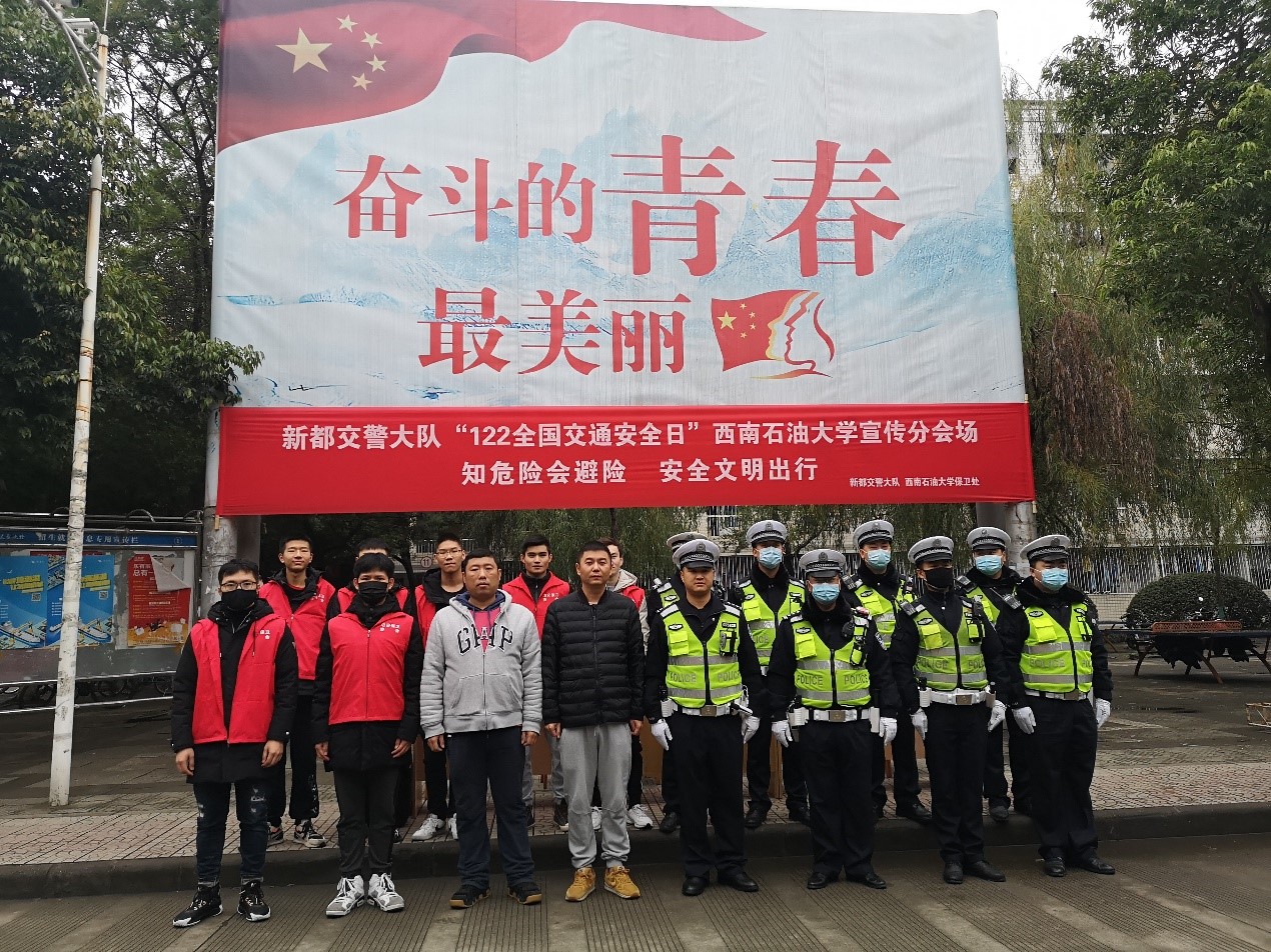 2020年12月2日,是第九个“全国交通安全日”。国家设立“全国交通安全日”,旨在促进道路安全畅通、推动社会文明进步、加强社会公德建设。为积极响应国家号召,加快建设平安校园,我校保卫处联合新都区公安分局交警大队于12月2日在一期学生宿舍区开展了“122全国交通安全日——知危险会避险,安全文明出行”宣传活动。
