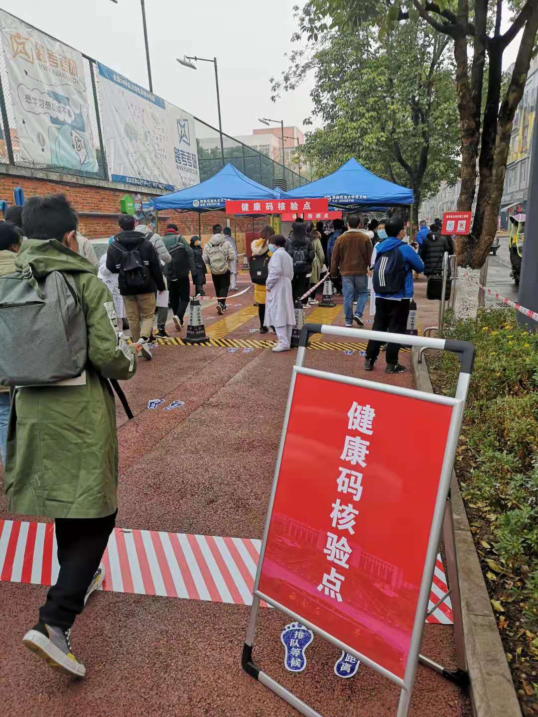 入场专用通道沿途均设置健康码扫描牌,考生可根据实际行进情况自行扫描获取健康码;在健康码核验点处,考生持绿码方可通过。