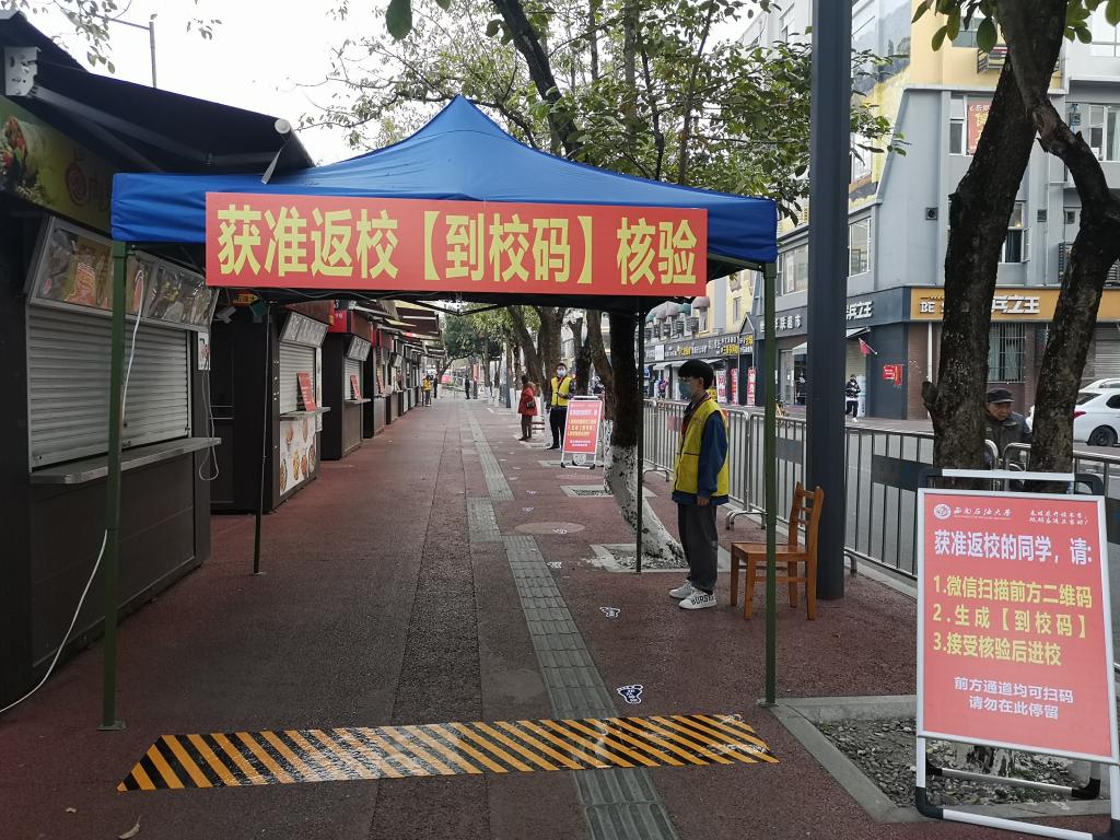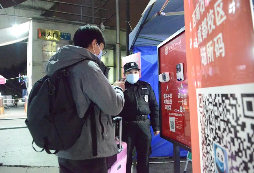 考虑到小部分学生可能存在深夜返校的情况,结合保安人员的配置效率,保卫处联合学工部,分别设置白天、深夜返校通道。白天(7:00-21:30)学生统一从东大门专用通道返校,晚上(21:30-第二天凌晨7:00)学生从南大门通道返校,经过身份核验、健康码核验、体温检测、到校码核验等流程,方可进入校园。