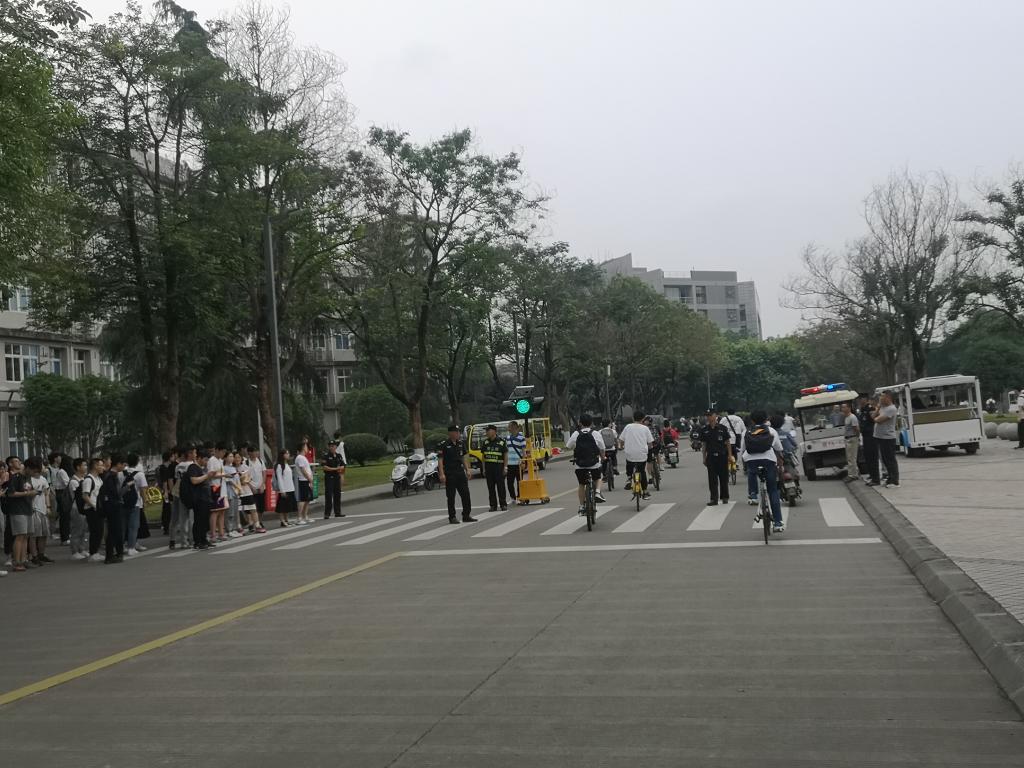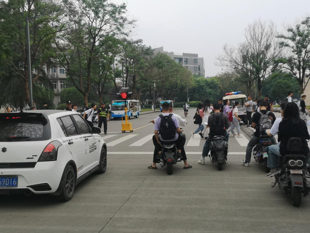 针对上下课时段部分校园干道人流量密集,车辆和行人通行较为困难的情况,保卫处安排专人多次实地调研,研究制定解决方案,争取利用先进设备和科技手段解决实际问题。考虑到便携式红绿灯占地面积小、使用太阳能电板、方便携带、方便移动、可节省人力资源等优点,保卫处自5月12日起,在思学楼至博学楼路口使用便携式红绿灯(四向)进行有计划地试点管控,并在高峰时段安排专人现场值守指挥,规劝师生根据红绿灯指示有序出行,确保通行安全。