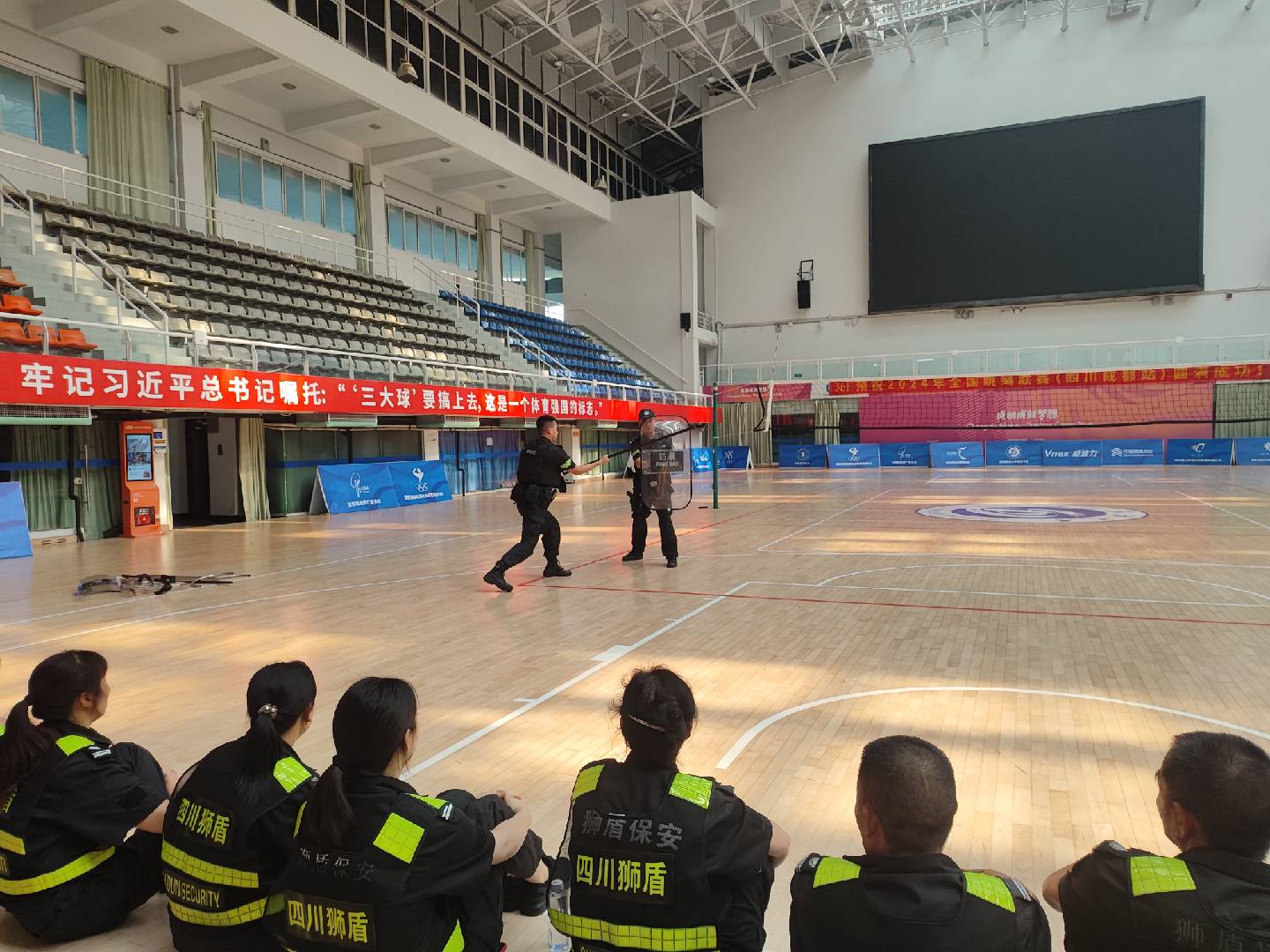 2024年秋季学期伊始,为有效防范校园暴恐事件,提高学校安保队伍应急处突能力,营造安全、和谐的育人环境,保卫处联合新都区公安分局于8月23日组织驻校保安大队开展校园反恐防暴系列演练活动。