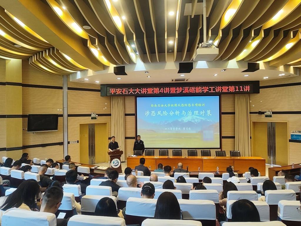 为贯彻落实总体国家安全观,增强广大师生反恐防暴安全意识,提升防范和应对暴恐袭击的能力,由党委保卫部和党委学生工作部联合举办的“平安石大”大讲堂第4讲暨“梦溪·砺能”学工讲堂第11讲——高校反恐防暴专题讲座于4月9日下午在思学楼A114举行。