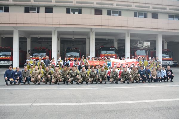 随后消防大队领导代表消防大队表示了对同学们的欢迎,并且向同学们介绍了消防基地的基本情况。消防官兵们给同学们展示了他们在灭火工作中的常用的方法和技能,有一人五带,两节拉梯,单人挂钩梯,高空缓降,快速打绳结等。参观之后同学们分为三组,由消防官兵指导分别进行了油盆麻袋灭火、干粉灭火器灭火、高空缓降体验等技能训练。此外,同学们还参观了消防大队营区、内务和战车装备等设施以及消防战士们的生活娱乐场所,了解消防官兵们的日常生活和训练。