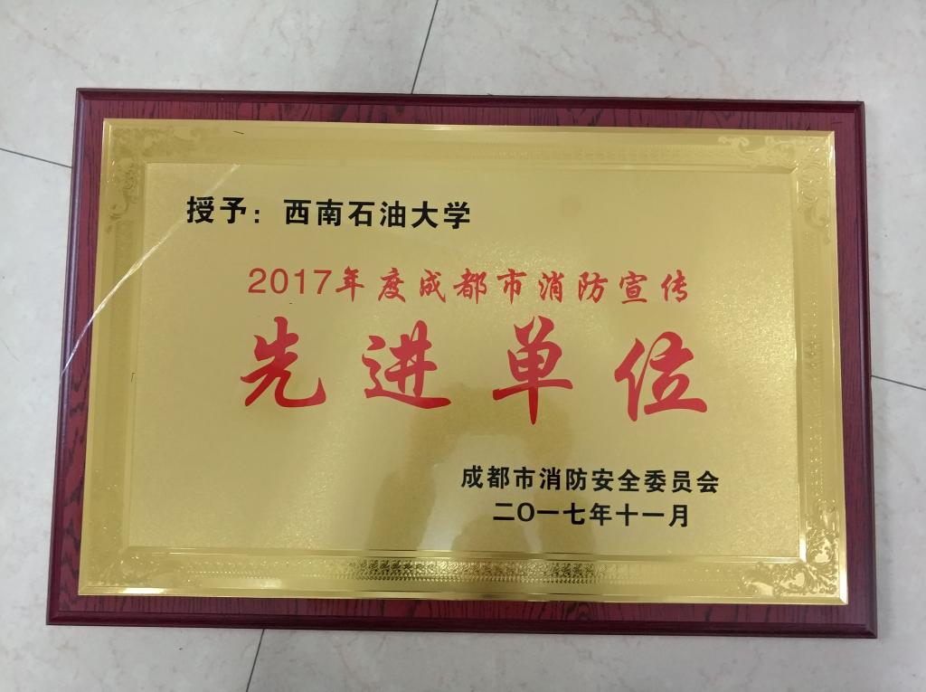 近日,成都市人民政府消防安全委员对2017年度消防宣传先进单位和个人进行了表彰,我校因消防宣传工作成绩突出,被授予“2017年度消防宣传先进单位”称号。