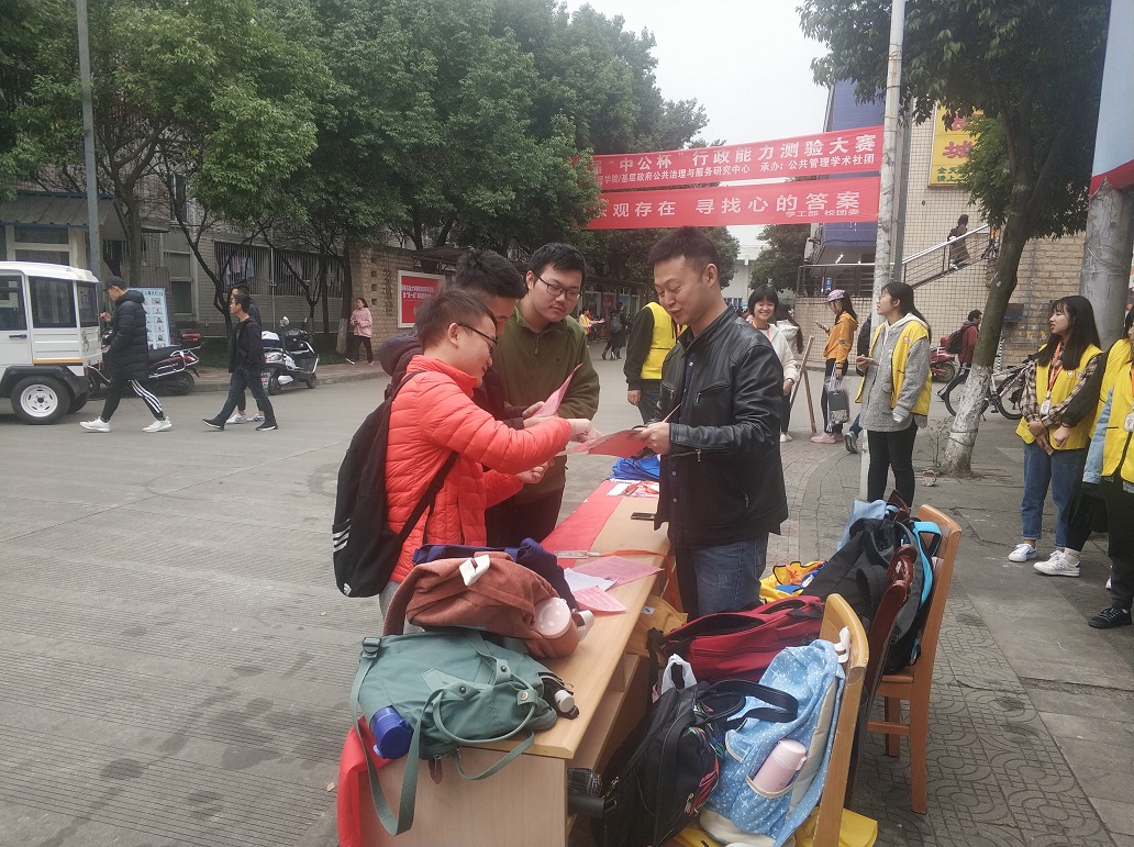 工作人员带领志愿者向过往师生发放消防宣传资料、讲解安全知识