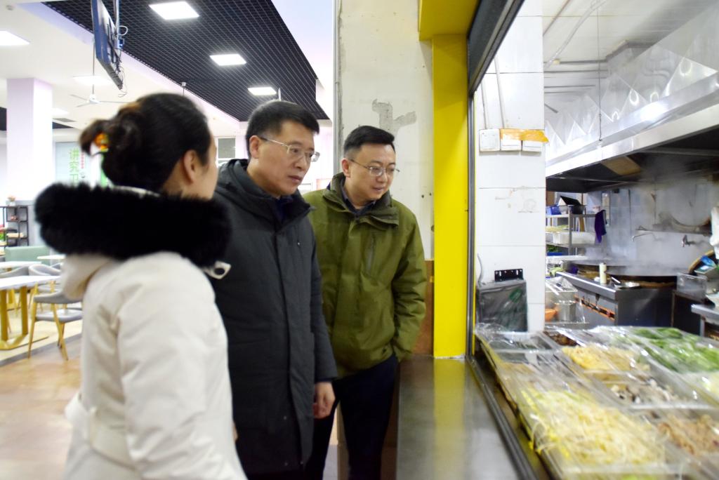 检查组一行先后到学校总值班室、保卫部、网信中心、校医院、学生食堂、基建处等场所,查看值班情况,了解校园巡防、网络安全、疾病防控、后勤保障、环境卫生、基础设施建设等基本保障工作。