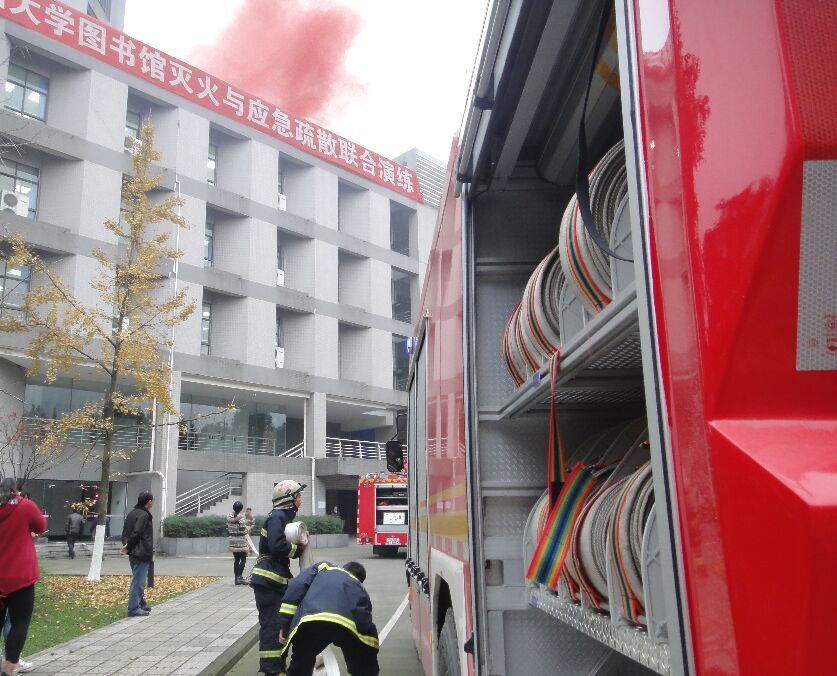 本次演练在保卫处、新都消防大队的积极配合下还进行了消防设施演练、救人演练、灭火演练。演习结束后,图书馆消防志愿者在保卫处消防科的大力支持下还进行了消防知识和灭火实战培训。