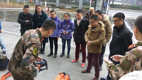 大家参观了救灾器具陈列室,看到很多叫不出名字的工具和设备。大家还参观了消防队的消防知识展览室,对消防的理念和知识有了更深入的了解。消防队员还现场为大家讲解了消防器材使用、火灾自救以及疏散的要领,并教大家三种救援中系绳索的方法。整个参观学习让大家深深感到安全与灾害其实就相隔一丝意念,安全意识越强,距离危险和灾害就越远。