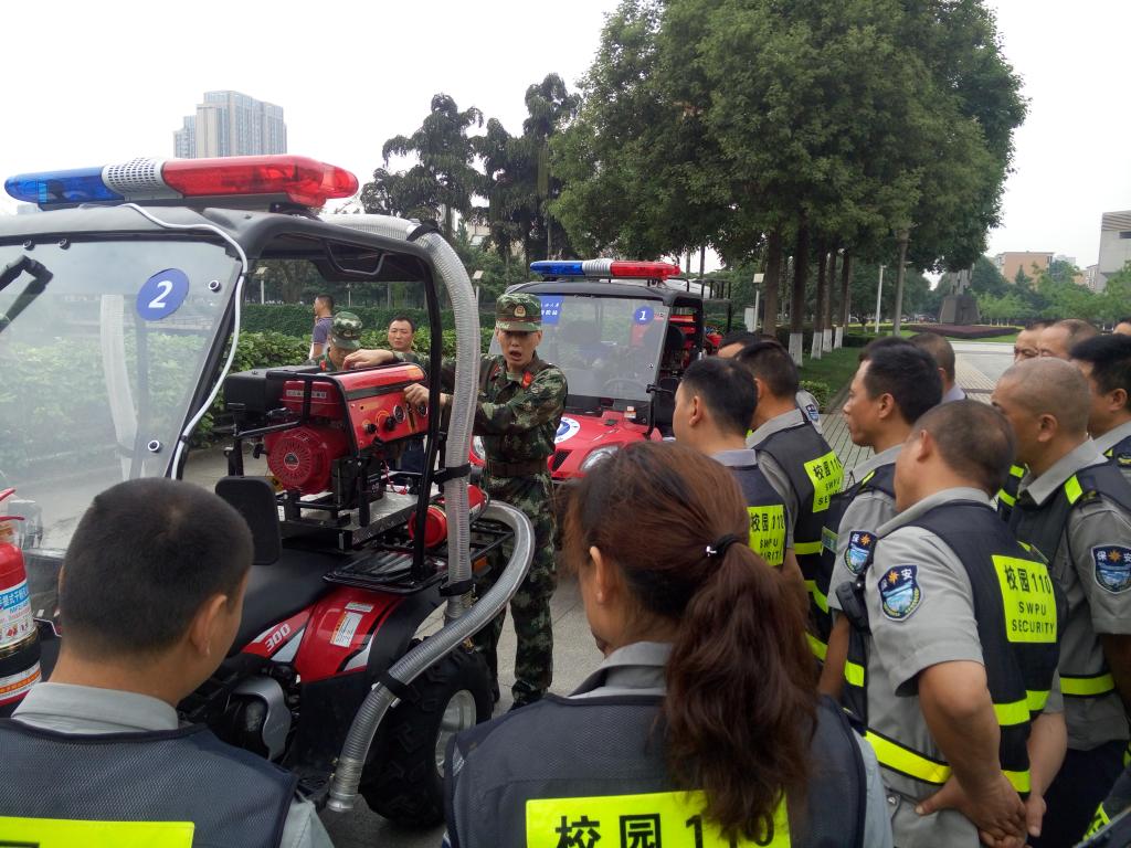 此次培训采取理论讲解、现场演示、专业答疑等多种有效方法开展授课。消防队教官结合火灾案例对火灾预防、消防设施使用、扑救各类初起火灾业务技能和注意事项、防火巡查基本知识等方面进行了深入讲解。消防官兵现场示范了四轮消防摩托车驾驶、手抬机动泵出水、细水雾灭火系统出水等新购置装备的使用方法,并组织每名参训队员进行现场操作。在整个培训中,消防官兵对每名参训队员都采取“手把手”培训、“面对面”教学,切实做到每名参训队员都能够牢固掌握此次培训内容。后期,保卫处工作人员还将定期组织全体队员开展业务技能训练,并逐一进行考核,确保微型消防站队伍真正形成战斗力。
