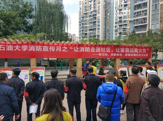 为进一步普及消防安全知识,增强广大教职员工及家属的消防安全意识,提高他们的火灾防范和逃生自救能力。2017年11月23日下午3点,保卫处带领大学生消防志愿者服务大队联合石大社区、后勤物业在香城学府广场上开展了以“让消防走进社区,让家庭远离火灾”为主题的消防安全宣传活动。