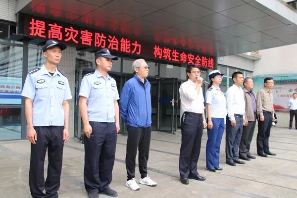 为进一步做好学校防灾减灾救灾工作,提高师生员工安全防范意识和应急避险及自救、互救、自护能力,5月9日下午,学校在明辨楼B区、C区举行了防震减灾应急疏散演练。校党委副书记赵正文、石工院党委书记张天军、学工部部长蒲勇、新都区城东派出所教导员袁涛、新都区消防大队参谋王晨等到场指导。演练活动由党办校办、石工院、保卫处组织实施。