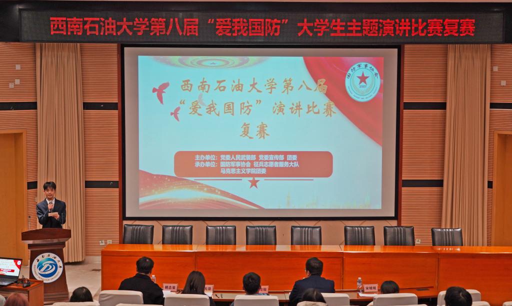 11月29日晚,由党委人民武装部、党委宣传部、团委共同主办的西南石油大学第八届“爱我国防”大学生主题演讲比赛复赛在思学楼A114举行。活动深入学习贯彻习近平强军思想和习近平总书记关于全民国防教育的重要指示精神,深化全民国防教育实践,教育引导广大青年学生进一步增强国防观念、铸牢国防意识。