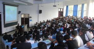 15日下午,授课组成员陈建州中校在思学楼B110教室以“中国周边安全环境”为题,对来自测控技术等三个专业班级250多名大一新生进行了授课。陈中校用幽默风趣的语言对国际战略环境的内涵、特点和应对举措等问题进行了深入浅出的分析和总结,课堂不时响起哄堂的笑声和热烈的掌声。武装部军事教研室教师、武装部办公室负责人共同参加了此次授课活动。