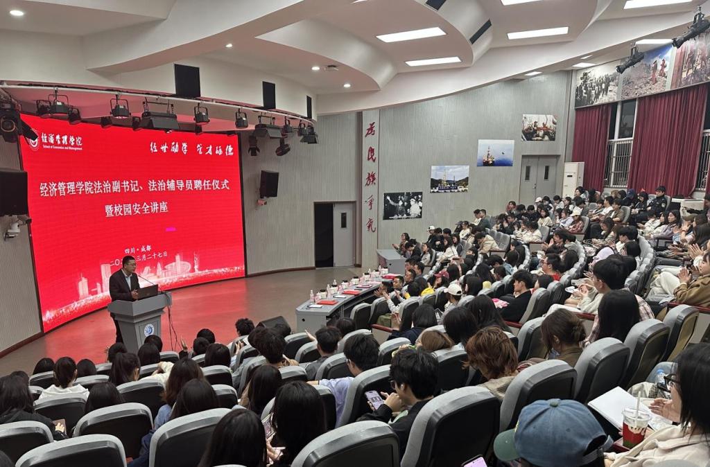 3月27日,经济管理学院与新都区桂林派出所在思学楼C110举办法治副书记、法治辅导员聘任仪式及校园安全知识讲座。