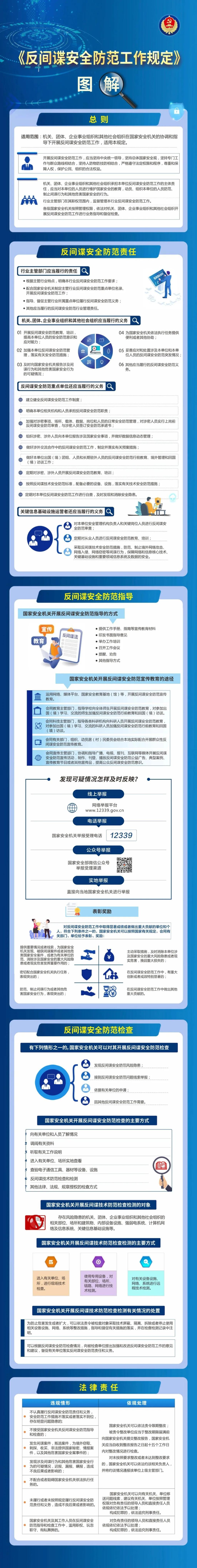 2021年4月26日,《反间谍安全防范工作规定》以国家安全部令的形式公布施行。《规定》作为国家安全部首个部门规章,立足构建反间谍安全防范体系,明确了不同主体的防范责任和义务、国家安全机关防范指导和检查职能及相应法律责任,从法律制度层面系统回答了“防什么、谁来防、怎么防”的问题,充分体现了积极防御、标本兼治的反间谍工作原则,不仅要“治已病”,也要“治未病”。