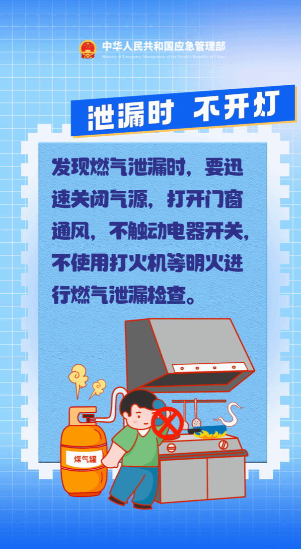 通——发现燃气泄漏后,要立即捂住口鼻、切断气源,打开门窗通风。