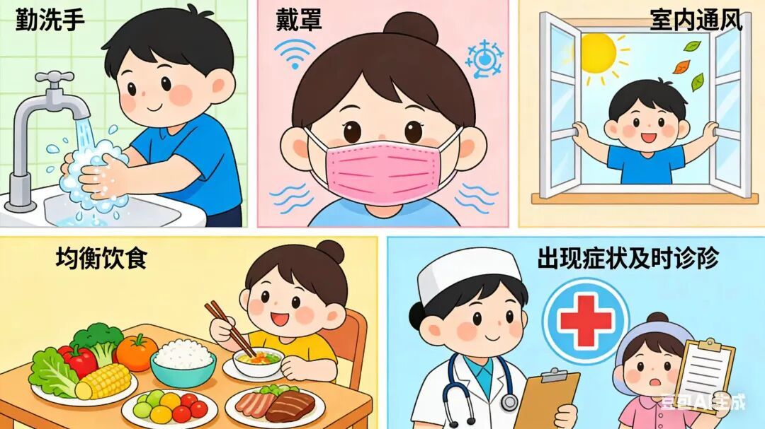 1. 冬季正值呼吸道传染病高发期,注意室内通风,前往人群密集场所建议科学佩戴口罩,勤洗手、常通风。