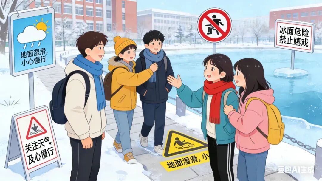 2. 切勿在结冰的江河、湖泊、水塘等非专业冰场行走、滑冰或玩耍,防止冰面破裂溺水。