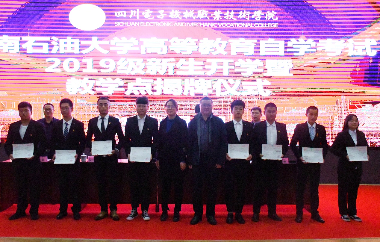 随后,汤富荣院长和黄艺副院长共同为西南石油大学高等教育自学考试四川电子机械职业技术学院教学点进行了揭牌。