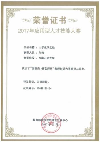 2017年12月2-3日,教育部发展中心举办的2017年应用型人才技能大赛在山东济南成功举行,中心实验教师刘梅参加了该项大赛中的国泰安•赛名师杯”教师创课大赛,经过网络提交作品预选(初赛)和现场答辩(决赛)角逐,最终荣获二等奖。据本届教师创课大赛负责人介绍,教师创课大赛“旨在通过共享优秀教学资源的学习机遇,促进相关师资创课及教学水平的提升,推动院校双师型师资培养与建设。大赛不仅为相关教师提供展示自我优秀教学水平和专业特色的平台,也将为企业寻求与优秀高校师资的合作提供捷径。