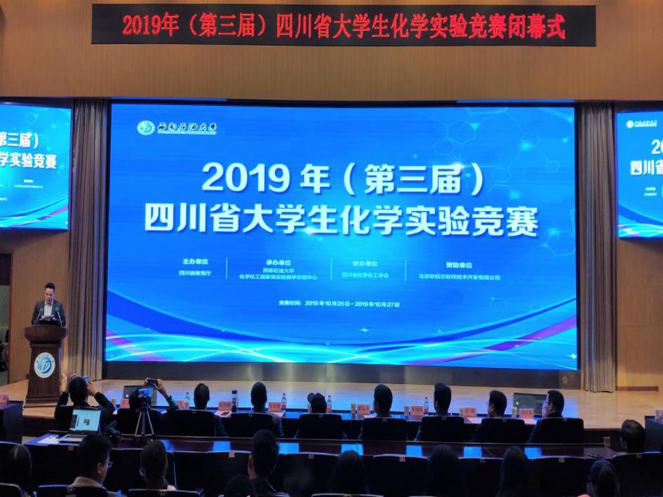 本届四川省大学生化学实验竞赛由四川省教育厅主办,西南石油大学承办,四川省化学化工学会协办,竞赛得到了教育厅相关主管部门大力支持。比赛分为笔试、虚拟仿真上机考试、基础化学实验技能测试以及综合实验能力测试。全面考查学生对无机化学、分析化学、物理化学、有机化学、仪器分析等知识与实验技能的综合运用能力和实验方案设计能力,全程要求自主操作、合作分析。