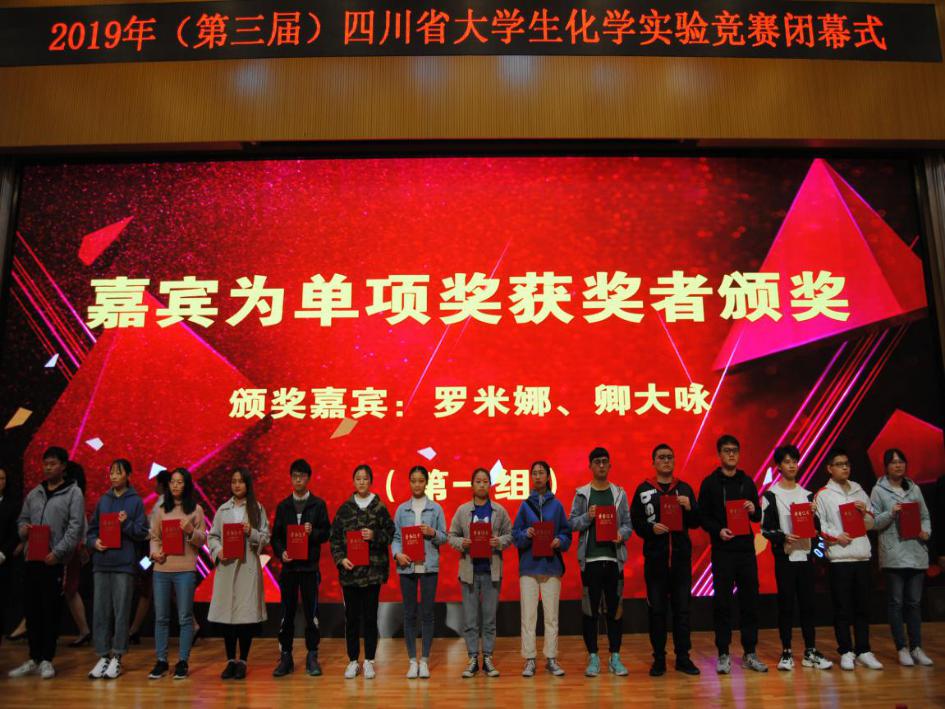 经竞赛组委会评定,来自西南石油大学、四川师范大学、成都理工大学、四川农业大学和西华师范大学的5支队伍获得一等奖,来自西华师范大学、四川轻工业大学等高校的10支队伍获得二等奖,来自西南科技大学、川北医学院等高校的15支队伍获得三等奖。四川省化学化工学会秘书长王天书教授、化工院党委书记王兵等获奖团队与个人颁奖,我校化学化工学院化学教研室主任段文猛进行了点评。此次竞赛,我校共有19支队伍参赛,获一等奖1项,二等奖2项。