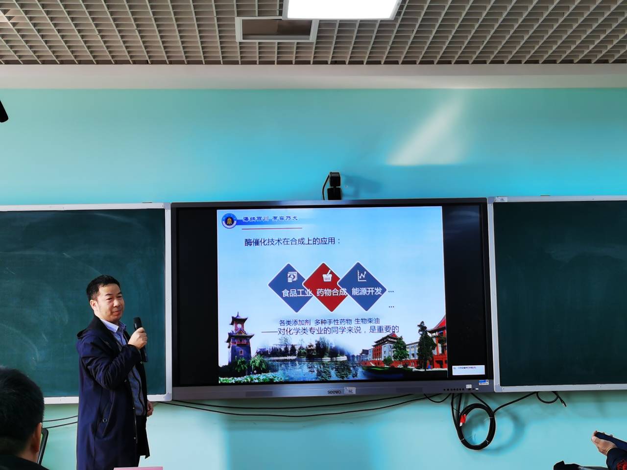 11月13日上午,实验中心利用承办四川省第四届大学生化学实验竞赛契机,组织召开了四川省高校化学类学院实验教学工作研讨报告会。会议在学校明理楼C1203智慧教室进行。国家级实验教学示范中心联席会化学化工组组长,全国大学生化学实验创新设计竞赛委员会副主任委员,南京大学博士生导师张剑荣教授就《围绕全面提高人才培养质量的教学教改工作》做了主题报告。浙江省教学名师,浙江工业大学国家级实验教学示范中心、国家级虚拟仿真实验教学中心负责人、浙江工业大学博士生导师艾宁教授做了《产出导向的化学化工实验教学改革》的报告。第二届全国大学生化学实验创新设计竞赛西南赛区负责人,四川大学化学学院博士生导师王玉良教授做了《化学实验教学内容的先进性建设》的报告。我校化学化工学院相关教师及来自省内18所有化学化工专业的院校教师近百人参加了会议。会议由化学化工学院副院长王林元教授主持。