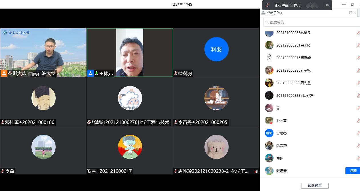 5月26日下午,学院为全体研究生举行线上“实验室安全教育培训”讲座,学院分管安全副院长王林元和实验室分管安全工作副主任卿大咏对研究生进行安全教育培训,学院安全员赵徊洁、蒲科羽也参加了本次讲座。