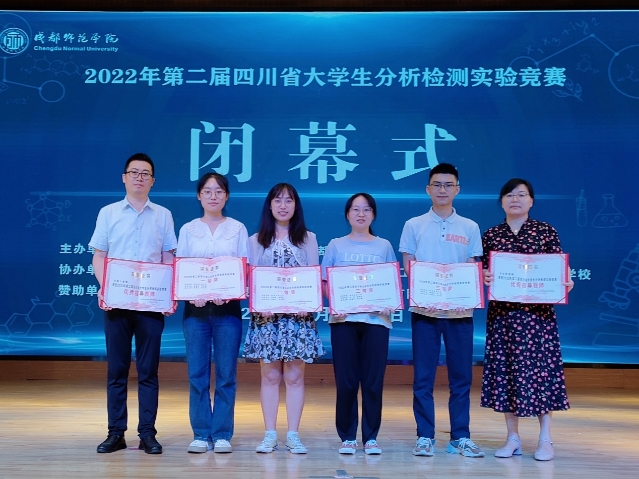 2022年7月15-17日,第二届四川省大学生分析检测实验竞赛在成都师范学院成功举办,化工院学生原佳露、桂润茜组成的一队荣获一等奖,张哑玲、伍海组成的二队获得三等奖。