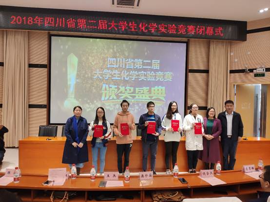 本次比赛在我校化工院“国家级实验教学示范中心”进行,主要考查学生对无机及分析化学、物理化学、有机化学、仪器分析等知识与实验技能的综合运用能力。参赛选手需在8小时内完成对络合物的合成,要求全程自主操作,并合作分析,比赛过程中体现出的选手审题、动手、时间安排以及团队协作能力是考评的重要标准。最终经竞赛组委会评定,来自西南石油大学、西南科技大学、四川师范大学、四川理工大学、成都师范大学的5支队伍获得一等奖,来自四川农业大学、西华师范大学等高校的10支队伍获得二等奖,来自西南民族大学,乐山师范大学等高校的15支队伍获得三等奖。我校参赛队伍二队获一等奖,一队获二等奖。