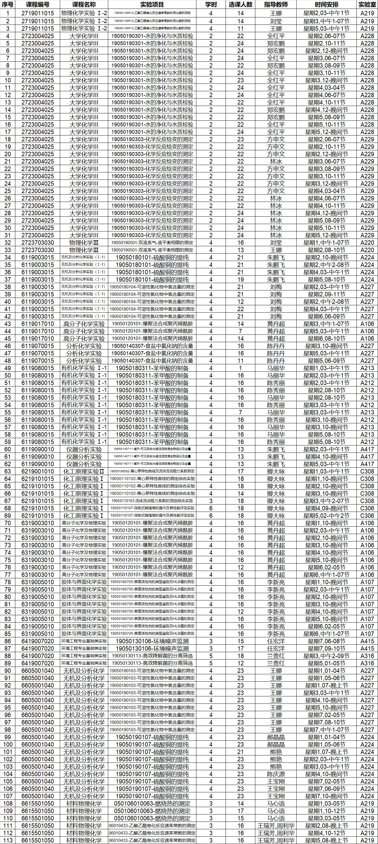 化学化工实验教学示范中心2025年秋季学期第10周实验教学安排
