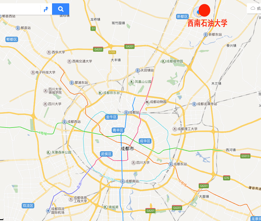 2.最不需要做功课的方式:乘坐出租车或网约车,告诉司机目的地是“新都 西南石油大学”,热情好客的成都人会准确的把你带到西南石油大学。