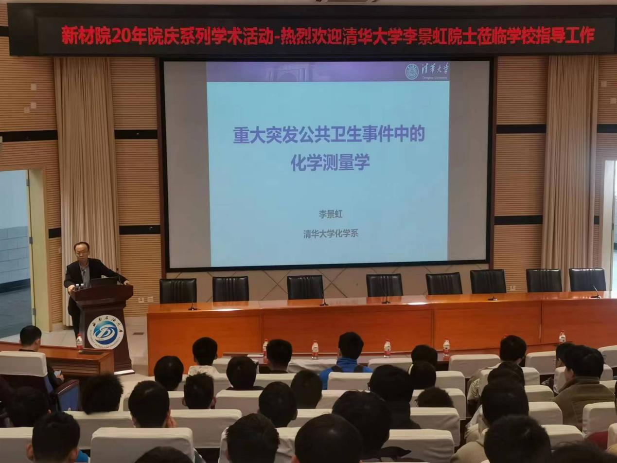 随后,李景虹院士在思学楼学术报告厅作了题为“重大突发公共卫生事件中的化学测量学”的学术报告。报告由新材院副院长武元鹏主持,新材院及相关学院师生参加了报告。