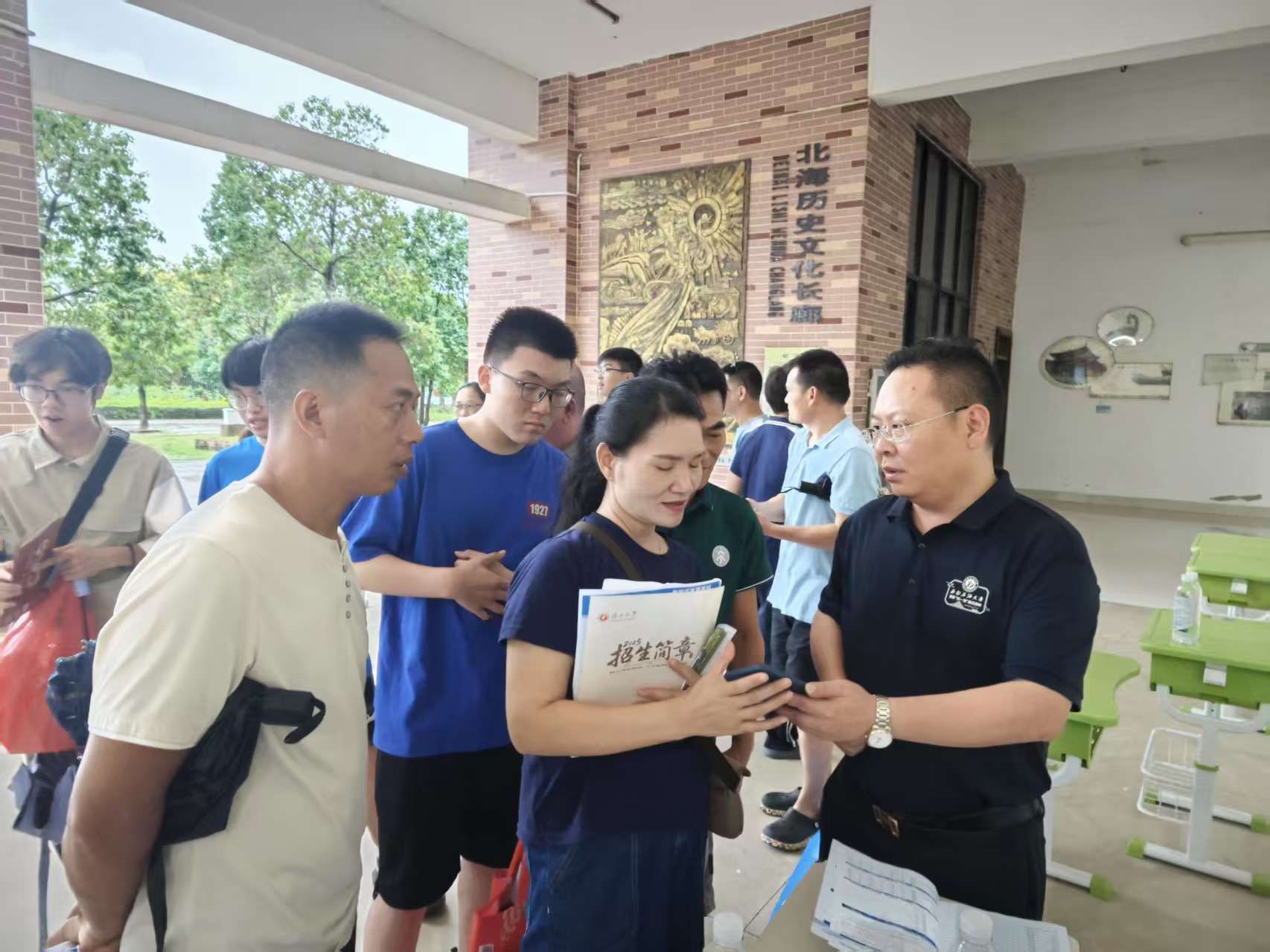 次日下午,两位老师转战北海中学咨询会。尽管高温袭人,现场仍吸引大批家长、学生驻足。两位老师结合学生学业情况提供个性化报考建议,鼓励学子根据兴趣选择专业,并就学院实践教学模式、校企合作平台等热点问题展开交流。
