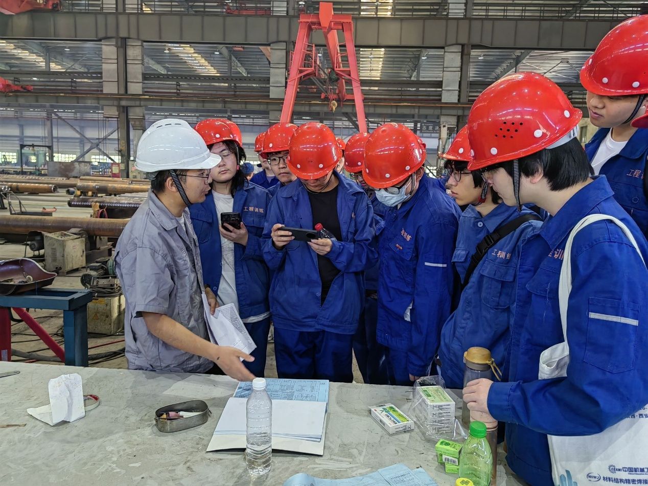 在实习过程中,学生们深入容器分厂、管子分厂、集箱分厂生产车间和工艺质量部,在工程师和技术人员的指导下,系统学习了压力容器制备的先进技术,并参与实际生产流程。通过理论与实践的结合,学生们不仅巩固了课堂知识,还掌握了焊接工艺优化、质量检测等实用技能。