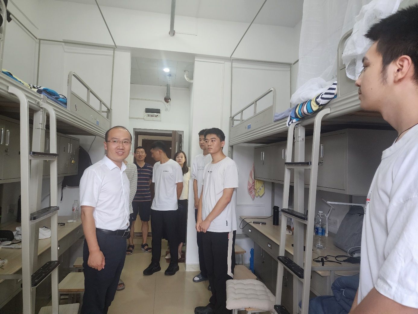 随后,武元鹏带队走进学生寝室,与同学们进行了亲切交流。针对新生们提出的各种疑问进行逐一细致周到的解答,他勉励同学们要及时明确新学期目标、合理制定学习计划。