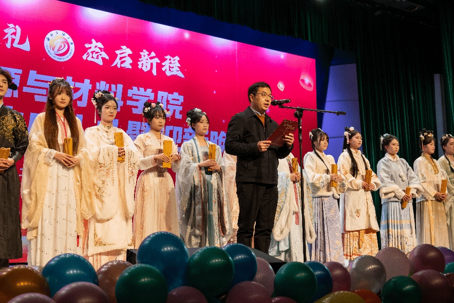 12月7日,西南石油大学新能源与材料学院为2025级新生举办了一场以“冠笄之礼,志起新程”为主题的成人礼仪式。在庄重典雅的礼乐中,学子们身着汉服,依次上台,接受师长为他们举行的“冠笄之礼”。
