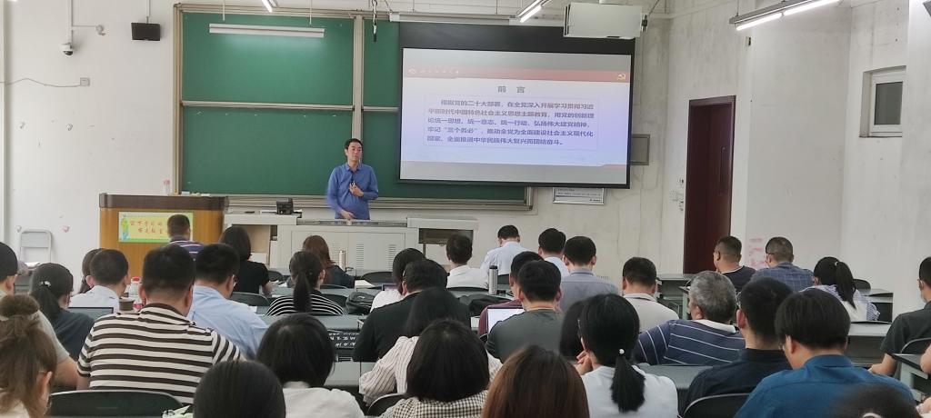 为扎实抓好主题教育,凝心聚力奋进新征程,5月18日下午,新材院于明德楼A201开展学习,由学院党委书记曾明友为全体教职工讲授“学思想、强党性、重实践、建新功”专题党课。