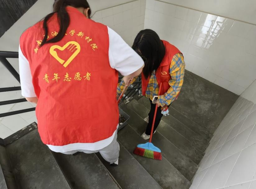 本次劳动服务过程中,志愿者们一直保持着高涨的热情,在当天10:00于16栋寝室楼前集合,有序领取各组的工作服和人员名单,并跟随组长前往不同的楼栋进行清扫。大家动作利落、有条不紊地使用各种卫生工具,从楼梯到走廊,扫地拖地、擦拭扶手、清理垃圾,公寓内逐渐变得明亮整洁起来。清扫活动结束后,大家积极反馈活动过程中遇到的问题,并提出改进措施,为下一次活动的顺利开展打好坚实基础。