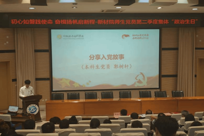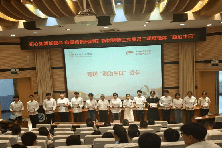 2025年6月12日,新能源与材料学院为145名师生党员举办集体“政治生日”活动。活动通过“贺卡传情、学纪守纪、故事润心、庄严承诺”四个环节,强化党员意识,传承红色基因。