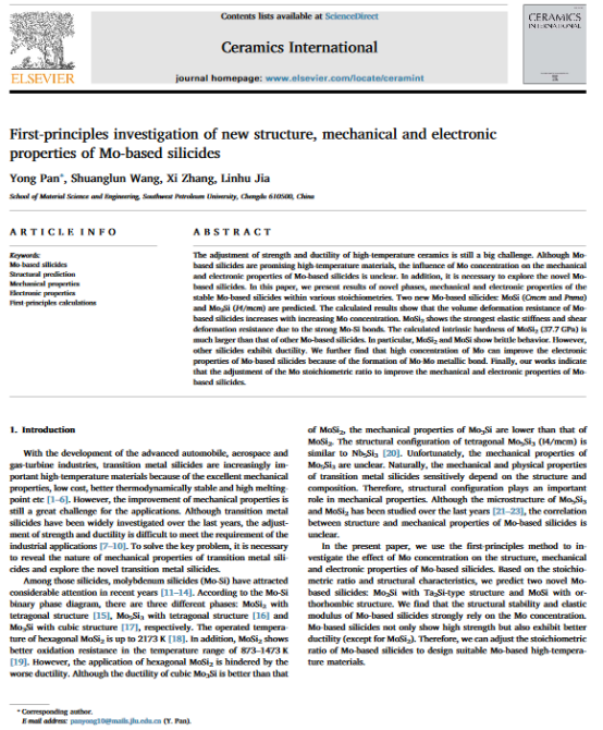潘勇老师在Ceramics International杂志发表学术论文,影响因子:2.986。