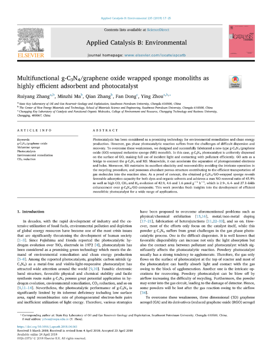周莹课题组在Applied Catalysis B:Environmental 杂志发表学术论文,影响因子:11.698。