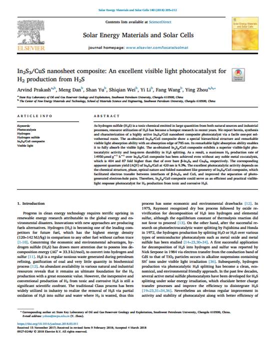 周莹课题组在Solar Energy Materials and Solar Cells杂志发表学术论文,影响因子:5.018。