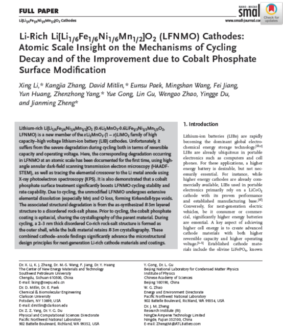 李星老师在Small杂志发表学术论文,影响因子:9.598。