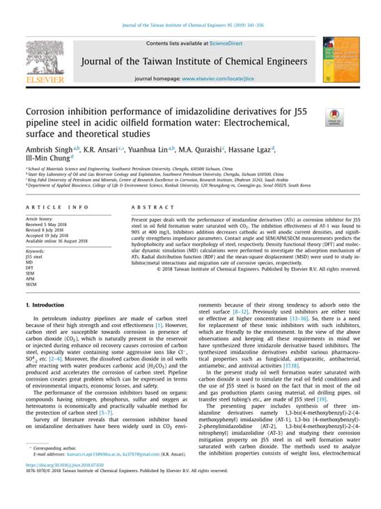 Ambrish Singh博士在Journal of the Taiwan Institute of Chemical Engineers杂志发表学术论文,影响因子:3.849。