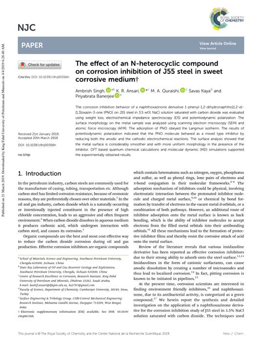 Ambrish Singh博士在NJC杂志发表学术论文,影响因子:3.201。