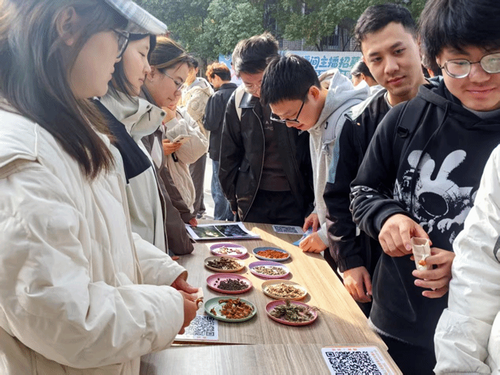 为深化青年学子对乡村振兴战略与中医药传承发展的认知,推动“识本草、爱三农”理念在校园落地,农民之子协会于11月20日在学生一食堂十字路口举办了“本草寻珍,农韵传薪”主题活动,吸引了全校680余名学生的踊跃参与。