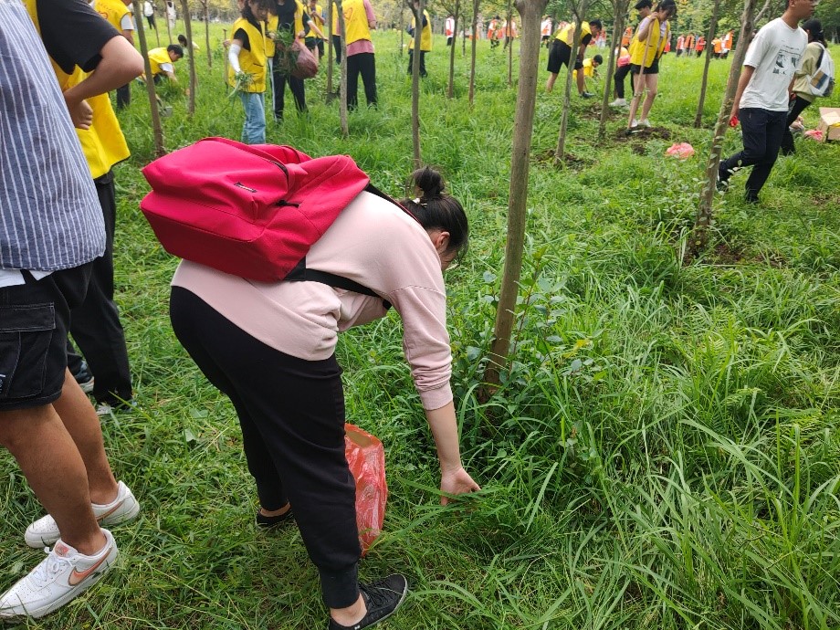 活动有序地进行着,大家互帮互助其乐融融,很快,杂草被清理干净了,每颗小树都被浇上了水。大家将装着杂草垃圾的袋子放到指定位置,活动也接近尾声。