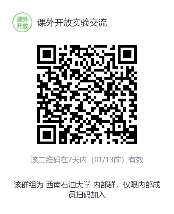 学校已将学生数据导入飞书系统,欢迎各位参加开放实验同学加入学校课外开放实验飞书交流群(请使用飞书软件扫码加入):
